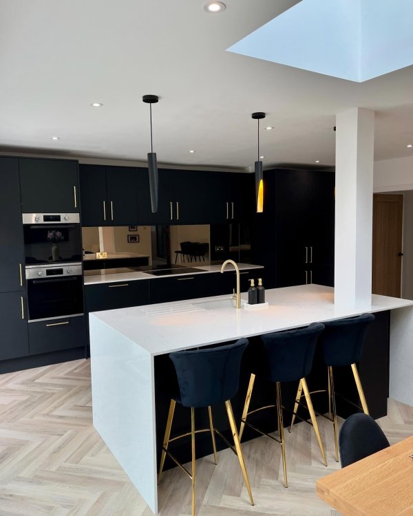 The sheen-free surface and slab style of these 18mm-thick cupboards create a stripped-back look that suits the simple aesthetic of handleless schemes. With a linear design, the black shade remains in focus, making it a great way to create a showstopping interior. A broad selection of profiles is available, which can be fitted alongside towers, beneath counters, and across the middle of base units for an eye-catching layout.